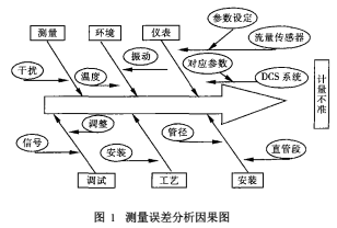由于工藝的改造,問題相對錯綜復雜,從設計、安裝、運行環(huán)境中都存在不同程度的改變,許多問題互相牽連,甚至一種問題是由不同的幾個原因共同造成的,再加上有些問題的解決需等待一定的工藝運行時機,故給問題的解決帶來了*大的困難?,F(xiàn)將影響測量誤差因素一一列舉(見圖1)。