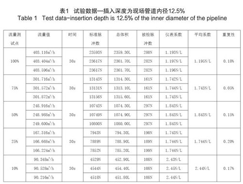 插入式蒸汽計(jì)量表插入深度為現(xiàn)場(chǎng)管道內(nèi)徑的 12.5%時(shí),試驗(yàn)數(shù)據(jù)如下(以 DN200 為例):