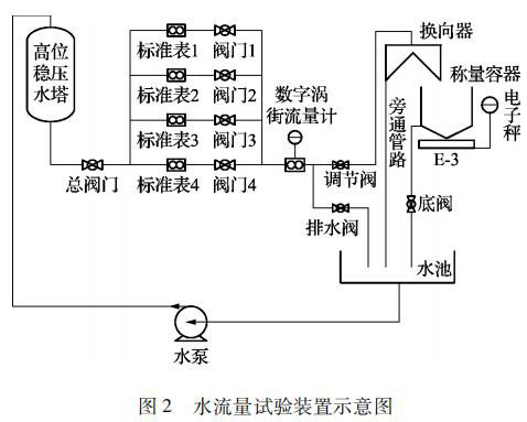在試驗(yàn)裝置管路出口處裝有換向器,用來改變流體的流向,使水流入稱量容器或者旁通管路而不改變流量。換向器啟動(dòng)時(shí),觸發(fā)計(jì)時(shí)控制器,以保證水的重量和時(shí)間的同步測量。