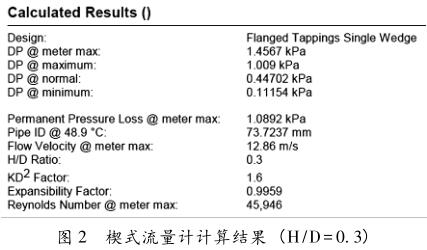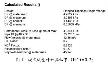 (4)根據(jù)工藝要求及現(xiàn)場(chǎng)安裝環(huán)境選擇耐壓、耐溫等級(jí)、防護(hù)等級(jí)、防爆等級(jí)、輸出信號(hào)等。3測(cè)量熱解氣的渦街流量計(jì)的選型設(shè)計(jì)熱解氣的組分如表1所述,其工藝參數(shù):操作密度0.63kg/m3,運(yùn)動(dòng)粘度2×10-5m2/s,操作溫度48.9℃,操作壓力7.5kPa,管道DN80,*小流量50Nm3/h,正常流量100Nm3/h,*大流量150Nm3/h,儀表測(cè)量范圍選擇0~180Nm3/h。因?yàn)楸狙b置為試驗(yàn)裝置,在裝置運(yùn)行的過(guò)程中,業(yè)主可能會(huì)根據(jù)需要適當(dāng)調(diào)整參數(shù),因此選擇量程比寬一些的流量計(jì)會(huì)有助于調(diào)整后的測(cè)量;另外熱解氣作為產(chǎn)品之一,其流量是驗(yàn)證工藝與關(guān)鍵設(shè)備的工程可行性、優(yōu)化工藝參數(shù)的關(guān)鍵參數(shù)之一,因此使用精度高一些的流量計(jì)也是有必要的;熱解氣的組分隨著參數(shù)的調(diào)整也可能會(huì)發(fā)生變化,因此基于伯努利方程原理的,如孔板、噴嘴、阿牛巴、德?tīng)査?、平衡式等都不能很好的測(cè)量,因?yàn)檫@類流量計(jì)受流體物性(密度、粘度)和組分變化影響,且*終的熱解氣產(chǎn)品或多或少都有焦油的存在,時(shí)間長(zhǎng)了可能堵塞流量計(jì)。楔式流量計(jì)帶自清潔的功能,如果采用法蘭取壓,變送器采用隔膜密封式變送器,其受焦油的影響較小,楔式流量計(jì)的計(jì)算結(jié)果分別見(jiàn)圖1和圖2。
