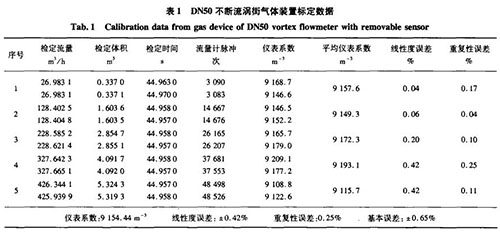 在實際標(biāo)定過程中,相同口徑的不斷流渦街與普通孔板流量計在可測流量范圍、基本誤差、重復(fù)性等參數(shù)上基本一致,達(dá)到了設(shè)計和使用精度的要求。
