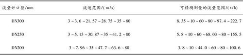 計(jì)算得到 DN200 ~ DN300 口徑的蒸汽流量計(jì)可保證精度的流量范圍,流速與流量的對(duì)應(yīng)關(guān)系如表 5 所示。