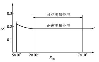 就多數(shù)蒸汽流量計(jì)而言,管道雷諾數(shù) R eD 在2 ×10 4 ~ 7 × 10 6 范圍內(nèi),斯特勞哈爾數(shù) S t 可看做常數(shù),在此區(qū)間可保證測(cè)量精度。斯特勞哈爾數(shù)S t 是蒸汽流量計(jì)的重要系數(shù)。如圖 2 所示,曲線S t ≈0. 17 時(shí),旋渦頻率與流速成正比。