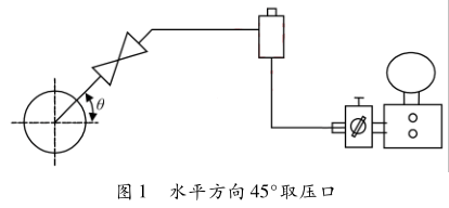 一些流量計(jì)安裝手冊(cè)或者參考書(shū)中會(huì)介紹測(cè)量蒸汽的孔板取壓口為水平方向θ=45°引出,如圖1所示。