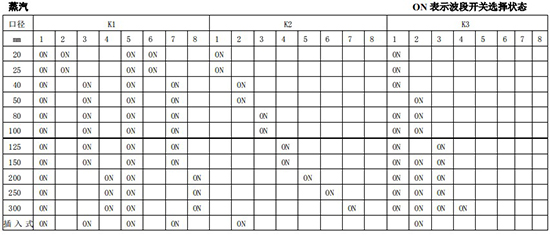(4)標況流量計算公式,單位 t/h:四、AMPKP09A01 放大板波段開關(guān)調(diào)整參照表五、AMPSW10A01 放大板波段開關(guān)調(diào)整參照表RG=1-F 調(diào)放大器增益,由 1 至 F 依次增大(常用 4-8);RS=1-F 調(diào)觸發(fā)靈敏度,由 1 至 F 依次提高(常用 4-8)不同口徑和介質(zhì)開關(guān)選擇參見附表。并根據(jù)實際信號先調(diào)整 K2 和 K3 擴展頻帶,必要時調(diào)整 K1 電荷放大器增益以上表值僅供參考,實際使用中因液體粘度和氣體密度不同應(yīng)在此值附近調(diào)整,頻率低時可將 K3 向大口徑方向調(diào)一至三檔。頻率高時可將 K2 向小口徑方向調(diào)一至三檔。訂貨須知及選型樣譜一.尊敬的用戶,當您要選用本公司產(chǎn)品時,請仔細閱讀選型樣本,并做好以下工作:1.認真核對被測介質(zhì)的工況條件:溫度、壓力、管徑等工藝參數(shù)。2.認真核對被測介質(zhì)的使用流量范圍,特別是*小流量值以*終確定使用儀表的口徑及配管參數(shù)。3.確定儀表的安裝地點,保證直管段,并為儀表的安裝維護創(chuàng)造好的環(huán)境條件。4.填好訂貨咨詢單,見附表三二.渦街流量儀表選型表(符合 JB/T9294-1999 標準)1.傳感器選型表