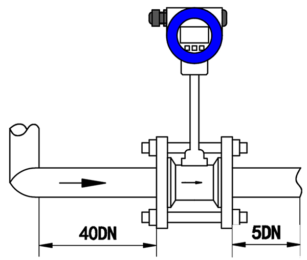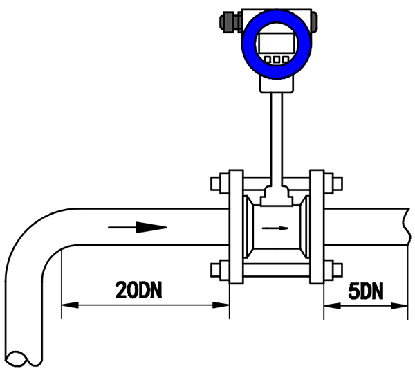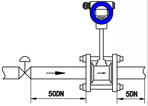 2、調(diào)節(jié)閥盡可能不安裝在渦街流量儀表的上游,而應(yīng)安裝在壓縮空氣流量計的下游10D處。