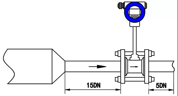 2、調(diào)節(jié)閥盡可能不安裝在液體渦街流量計(jì)的上游,而應(yīng)安裝在液體渦街流量計(jì)的下游10D處。