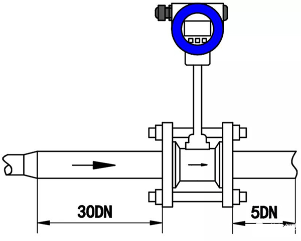 2、調(diào)節(jié)閥盡可能不安裝在空氣渦街流量計(jì)的上游,而應(yīng)安裝在空氣渦街流量計(jì)的下游10D處。