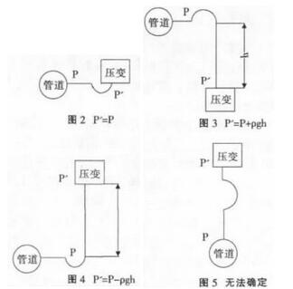 建議采用圖2的安裝方式,如不得已需要選擇圖3、圖4的安裝方式一定要對壓力進行補償。不建議按照圖5的方式安裝,因為無法確定P'與P的關(guān)系。而一般在儀表的說明書中大都是建議以圖5的方式來安裝。在此建議大家在有條件的情況下按照圖2來安裝壓力變送器。