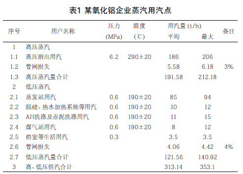 以表1為例,氧化鋁企業(yè)蒸汽需要計量點(diǎn)一般在8~10個,用汽量從3.5~206t/h不等,溫度和壓力也不盡相同。