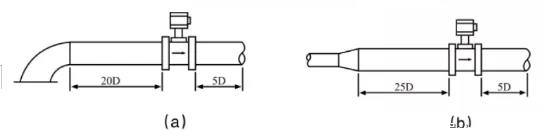 (2)配管應(yīng)與傳感器同心,同軸度應(yīng)不小于0.05D′。