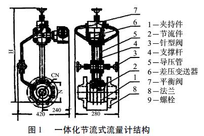2.3.1一體化節(jié)流式流量計結(jié)構(gòu)和工作原理一體化節(jié)流式流量計結(jié)構(gòu),如圖1所示。