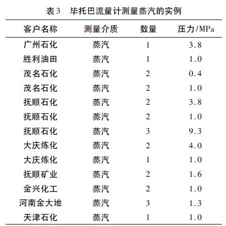 參照其他企業(yè)畢托巴流量計測量低壓蒸汽的成功經(jīng)驗(yàn),如表3所示,確定該低壓蒸汽計量采用的流量計為遼寧畢托巴科技有限公司生產(chǎn)的畢托巴蒸汽流量計。