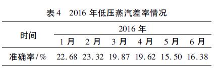 2015年11月上旬,利用公司停工檢修的機(jī)會,我們安裝了遼寧畢托巴科技有限公司生產(chǎn)的畢托巴蒸汽流量計,經(jīng)過調(diào)試、組態(tài)等相關(guān)工作以后,至3月開始,蒸汽系統(tǒng)低壓蒸汽外供量以該計量表數(shù)據(jù)為準(zhǔn),表4為我公司2016年1-6月份蒸汽準(zhǔn)確率情況。