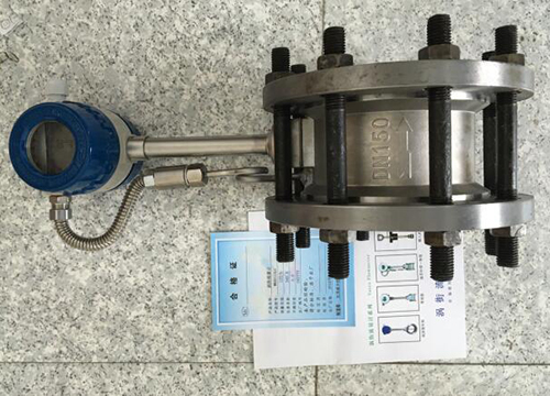 在流體管道中,垂直插入—個(gè)柱形阻擋物,在其后部(相對(duì)于流體流向)兩側(cè)就會(huì)交替地產(chǎn)生旋渦。隨著流體向下游流動(dòng)形成旋渦列,我們稱(chēng)之為卡門(mén)渦街。我們把產(chǎn)生旋渦的柱形阻擋物定義為旋渦發(fā)生體在一定條件下旋渦的分離頻率與流體的流速成線性關(guān)系。因而,只要檢測(cè)出旋渦分離的頻率,即可計(jì)算出管道內(nèi)流體的流速或流量。