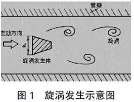 渦街流量計(jì)利用卡門渦街原理。在流體中安放旋渦發(fā)生體,流體在旋渦發(fā)生體下游兩側(cè)交替地分離釋放出兩列有規(guī)律的交錯(cuò)排列的旋渦,在一定雷諾數(shù)范圍內(nèi),該渦街的頻率與旋渦發(fā)生體的幾何尺寸,管道的幾何尺寸有關(guān),旋渦的頻率正比于流量,此頻率可由探頭檢出。