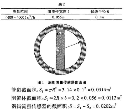 當(dāng)流量為4000m³/h時,此時通過氣體渦街流量傳感器的流速v: