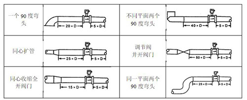 安裝要求:規(guī)范對飽和蒸汽流量表的安裝要求比較多,除了對飽和蒸汽流量表的前后直管段的要求如圖,